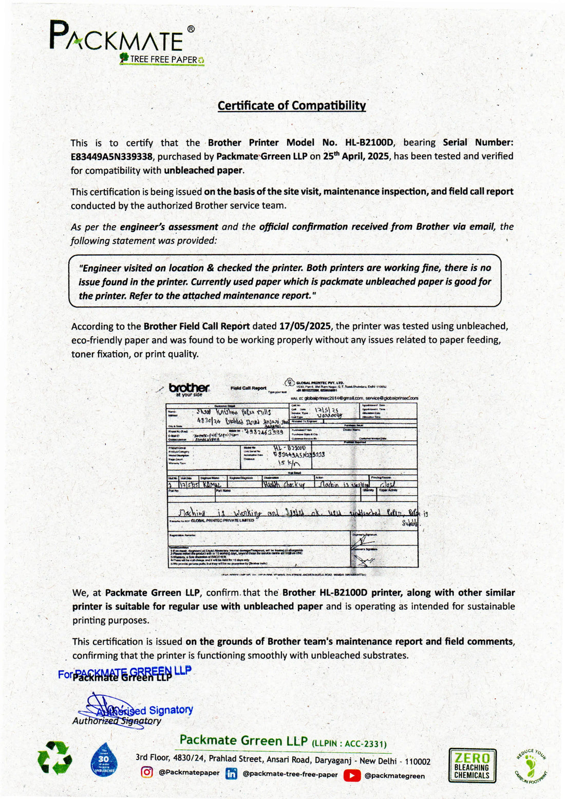 "I would like to put on record our appreciation for Mr. Naynesh Pasari and his wonderful product, Packmate brown paper. Our first inclination towards this product was because of its unique color but our interest deepened after we got to know about its recycled nature. Upon starting using the brown copier it was readily accepted by our office team and the change from white to brown was a very welcome one. The printing on this paper is accurate and exactly the same as white one."